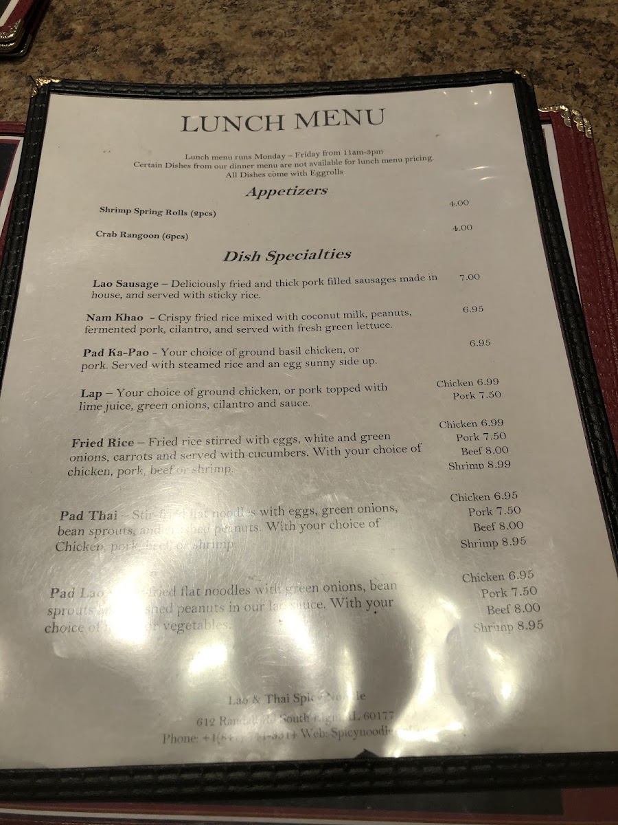 Lao and Thai Spicy Noodle Menu (2025 Update)